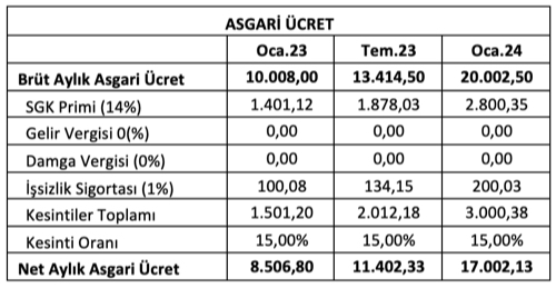 30.12.2023 tarihli, 32415 sayılı Resmi Gazetede yayımlanan Asgari Ücret Tespit Komisyonu’nun 27.12.2023 tarih ve 2023/2 sayılı Kararıyla 2024 yılında uygulanacak asgari ücret tutarı belirlenmiştir.